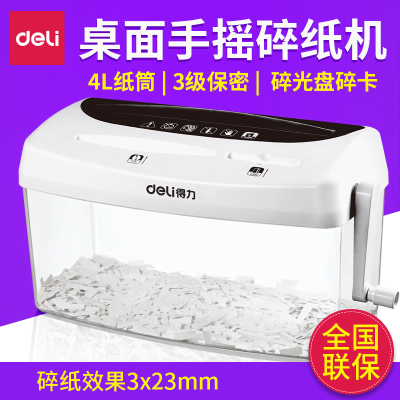 得力手摇碎纸机迷你办公室便携小型手动家用手摇式碎信用卡可碎光盘粉碎机9935 四级保密 全国联保